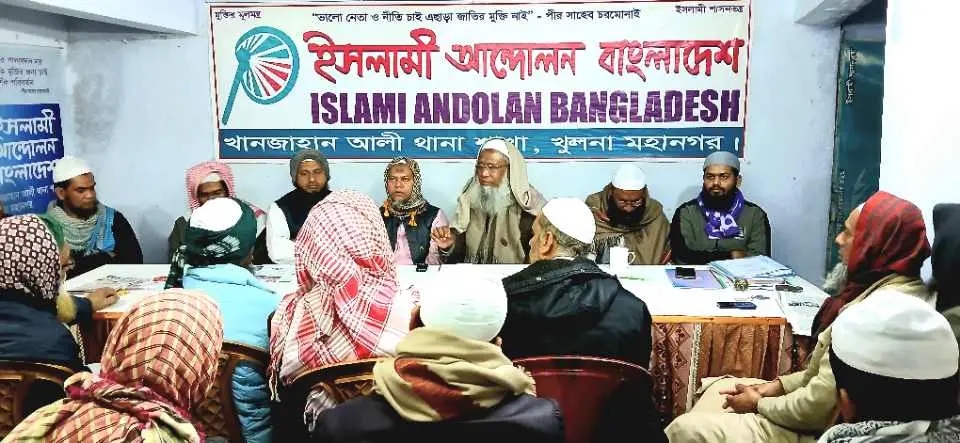 ইসলামী আন্দোলন বাংলাদেশ কেসিসি ২ নং ওয়ার্ড শাখার কর্মী সভা আজ সন্ধ্যা ৬ টায় ফুলবাড়ীগেট বাসস্ট্যান্ডস্থ দলীয় কার্যালয়ে শাখা সভাপতি মাওলানা হারুন অর রশীদ এর সভাপতিত্বে অনুষ্ঠিত হয়। কর্মী সভায় প্রধান অতিথি হিসেবে উপস্থিত ছিলেন ইসলামী আন্দোলন বাংলাদেশের কেন্দ্রীয় নায়েবে আমীর, আসন্ন ত্রয়োদশ জাতীয় সংসদ নির্বাচনে খুলনা-৩ আসনে হাতপাখার সংসদ সদস্য পদপ্রার্থী হাফেজ মাওলানা আব্দুল আউয়াল। ওয়ার্ড সেক্রেটারী মোঃ আমির হোসেন এর সঞ্চালনায় অনুষ্ঠিত কর্মী সভায় আরও উপস্থিত ছিলেন খুলনা-৩ আসনে নির্বাচন পরিচালনা কমিটির প্রধান সমন্বয়কারী মোঃ আবু গালীব,ইসলামী আন্দোলন বাংলাদেশ খানজাহান আলী থানা শাখার সভাপতি মাওলানা আব্দুল্লাহ আল মাসুম,সহ-সভাপতি মাওলানা সিরাজুল ইসলাম,মোঃ জামাল হোসেন বিশ্বাস,সেক্রেটারী মাস্টার মঈন উদ্দিন ভূঁইয়া, জয়েন্ট সেক্রেটারী ও থানা নির্বাচন পরিচালনা কমিটির প্রধান সমন্বয়কারী মুহাঃ নাজিম হাওলাদার নাঈম,যোগিপোল ইউনিয়ন শাখার সভাপতি মুফতি জসিম বিন আফতাব,মোঃ আব্দুল হালিম,আলহাজ্ব মোঃ দেলোয়ার হোসেন, মাস্টার শাকিব,মোঃ ওহিদুল ফকির,মোঃ মাহাতাব ইবনে রফিক,মুফতি মাহমুদুল হাসান,মাওলানা মাসুম বিল্লাহ,মোঃ কাবিল হোসেন,মোঃ সাইফুল ইসলাম বাপ্পি, মোঃ কামরুল হুদা চৌধুরী,মোঃ আরমান হোসেন,মোঃ আব্দুল্লাহ সুমন সহ প্রমূখ নেতৃবৃন্দ।
