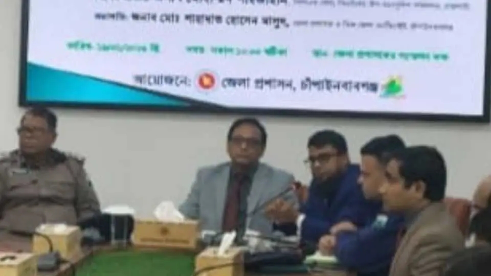 অনুষ্ঠানে সভাপতিত্ব করেন চাঁপাইনবাবগঞ্জের জেলা প্রশাসক ও বিজ্ঞ জেলা ম্যাজিস্ট্রেট জনাব মোঃ শাহাদাত হোসেন মাসুদ। তিনি জেলার নির্বাচনী প্রস্তুতির বর্তমান চিত্র তুলে ধরেন এবং সংশ্লিষ্ট দপ্তরগুলোর মধ্যে সমন্বয় বৃদ্ধির ওপর জোর দেন।
