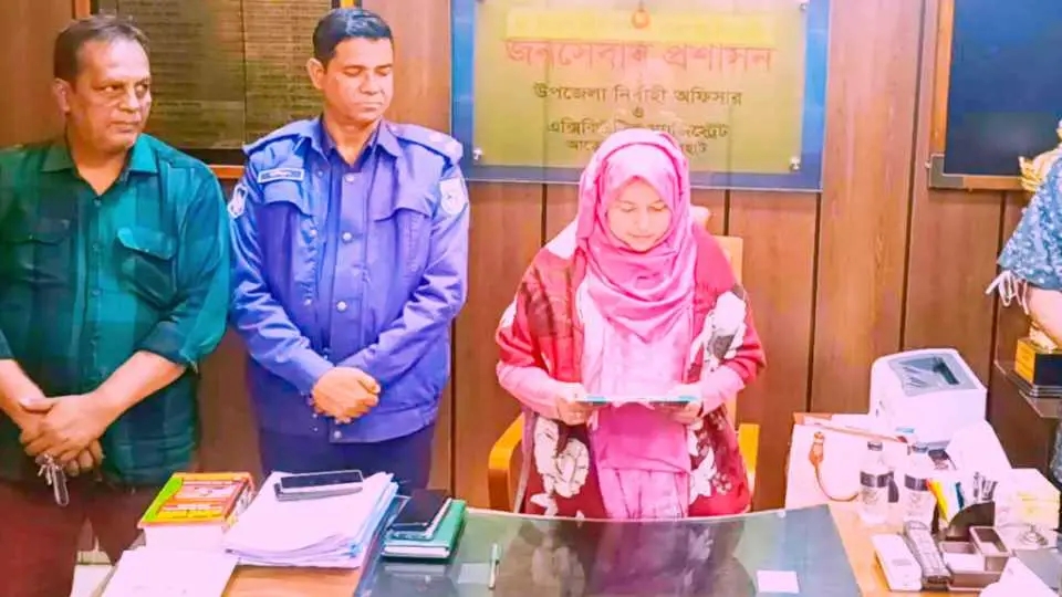 মঙ্গলবার দুপুরে উপজেলা নির্বাহী কর্মকর্তার কার্যালয়ে আনুষ্ঠানিক ভাবে তাঁকে শপথ পাঠ করান উপজেলা নির্বাহী অফিসার ফারজানা জান্নাত।