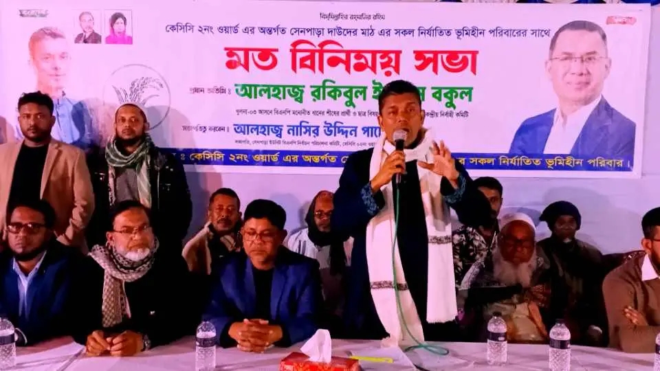 সেনপাড়া ইউনিট বিএনপির নির্বাচন পরিচালনা কমিটির সভাপতি নাসির উদ্দিন পাটোয়ারীর সভাপতিত্বে এবং কেসিসি ২ নং ওয়ার্ডে বিএনপির সাধারণ সম্পাদক রফিকুল ইসলাম রফিকের পরিচালনায় প্রধান অতিথি হিসেবে উপস্থিত ছিলেন বিএনপির কেন্দ্রীয় নির্বাহী কমিটির ছাত্র বিষয়ক সম্পাদক ও খুলনা ৩ ধানের শীষের মনোনীত প্রার্থী আলহাজ্ব রকিবুল ইসলাম বকুল ।এ সময় উপস্থিত ছিলেন খুলনা মহানগর বিএনপির সাংগঠনিক সম্পাদক শেখ সাদী, খান জাহান আলী থানা বিএনপির সাধারণ সম্পাদক আবু সাঈদ হাওলাদার আব্বাস, সাংগঠনিক সম্পাদক মোল্লা সোহাগ হোসেন, এনামুল হাসান ডায়মন্ড, চৌধুরী শফিকুল হোসেন, ইকবাল হোসেন মিজান, মীর শওকত হোসেন হিট্টু, মোয়াজ্জেম হোসেন বাবু ,ইমদাদুল হক , শাহাবুদ্দিন বুদ্ধি,নুর আলম, ইমারত আলী জোয়ারদার, নূর হোসেন বাবু, আবুল কালাম, জহিরুল ইসলাম টিপু, শাম্মী চৌধুরী মলি , যুবদল নেতা মেহেদী হাসান বাপ্পি,আল মামুন খান,ফারজানা চৌধুরী হলি, তাসলিমা বেগম, ইতি রহমান, সাবিনা ইয়াসমিন সহ বিএনপি ও সহযোগী সংগঠনের নেতাকর্মীরা। প্রধান অতিথি তার বক্তব্যে বলেন বাসস্থান মানুষের মৌলিক অধিকার। তিনি আরো বলেন খুলনা ৩ আসন থেকে যে জনগণের ভোটে নির্বাচিত হবেন দাউদের মাঠে নির্যাতিত ভূমিহীন পরিবারের বাসস্থানের ব্যবস্থা করা অন্যতম দায়িত্ব বলে আমি মনে করি।