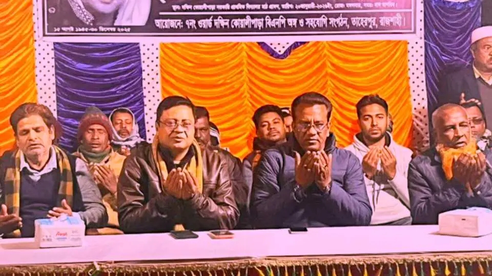 আজ ২০ জানুয়ারি সন্ধা বাদ মাগরিব রাজশাহীর বাগমারার তাহেরপুর পৌরসভার ৭ নং ওযার্ড বিএনপির অঙ্গ সহযোগী সংগঠনের আয়োজনে দক্ষিণ কোয়ালীপাড়া সরকারি প্রাথমিক বিদ্যালয়ের মাঠে দোয়া ও মিলাদ মাহফিল অনুষ্ঠিত হয়।