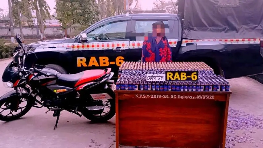 বৃহস্পতিবার আটককৃত মাদক কারবারি মিজানের স্বীকারোক্তি মোতাবেক তার বাড়িতে আবারো ও র্যাব, বিজিবি যৌথ অভিযান চালিয়ে তার বাড়ির পাশে ঘেরের বাসা থেকে ৪ টি বস্তায় ৯৮৩ বোতল ফেন্সিডিল ও ১ টি মোটরসাইকেল সহ তার স্ত্রী ইয়াসমিন জাহানকে আটক করা হয়েছে। শনিবার (২৪ জানুয়ারি) বিকাল সাড়ে ৩ টার দিকে সাতক্ষীরার কালিগঞ্জ উপজেলার ভাড়াসিমলা ইউনিয়নের কামদেবপুর এলাকায় র্যাব-৬ এর অতিরিক্ত পুলিশ সুপার জায়েন উদ্দিন মোহাম্মদ জিয়া এবং বিজিবি হাবিলদার জাহাঙ্গীরের নেতৃত্বে অভিযান চালিয়ে তাকে ফেনসিডিল সহ আটক করা হয়। আটকৃত ইয়াসমিন জাহান (২২) উপজেলার কামদেবপুর গ্রামের মাদক কারবারি মিজানুর রহমানের স্ত্রী। উক্ত ঘটনায় আটকৃত মাদক কারবারি ইয়াসমিন জাহানকে ফেনসিডিল সহ থানায় সোপর্দ করে এ রিপোর্ট লেখা পর্যন্ত পৃথক আরো একটি মামলার প্রস্তুতি চলছিল। গত বৃহস্পতিবার (২৩ জানুয়ারি) দুপুরে সাতক্ষীরা র্যাব-৬ এর একটি আভিযানিক দল গোপন সংবাদের ভিত্তিতে অভিযান চালিয়ে কামদেবপুর গ্রামের বাড়ি থেকে ৫০৭ বোতল ফেনসিডিল সহ মাদক কারবারি মিজানুর রহমানকে আটক করে থানায় সোপর্দ করে একটি মামলা দায়ের করে। থানায় আটককৃত মিজানুর রহমানের জিজ্ঞাসাবাদে তার স্বীকারোক্তি মোতাবেক পরদিন শনিবার আবারও তার বাড়িতে অভিযান চালিয়ে পাশে মৎস্য ঘেরের বাসা থেকে ৪ টি বস্তায় ৯৮৩ বোতল ফেনসিডিলসহ তার স্ত্রী ইয়াসমিন জাহানকে আটক করে থানায় নিয়ে আসে।